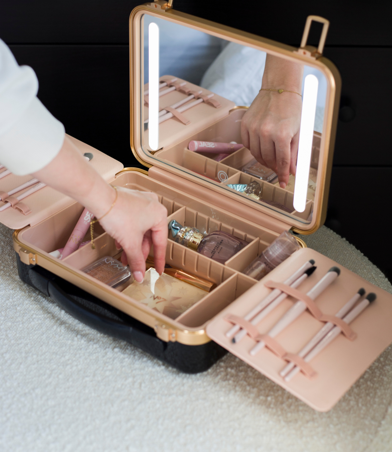 Our new Signature Beauty Case features adjustable dividers to fit your essentials the way you want them