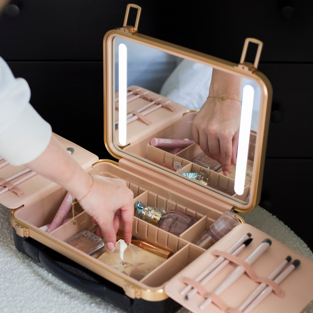 Our new Signature Beauty Case features adjustable dividers to fit your essentials the way you want them